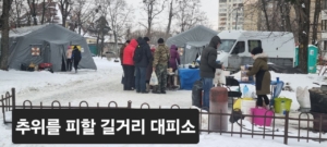 영하 20-30도의 혹한에 러시아의 공격으로 파괴된 전력 시설…상하수도가 얼고 아파트는 냉동실이 되었습니다. 추운 집안보다는 따뜻한 밖으로 나왔지만, 살을 에는 추위로 몸과 마음이 지칩니다. 길거리마다 천막용 대피소가 설치되어 차와 식료품을 나누는 풍경을 볼 수 있습니다.